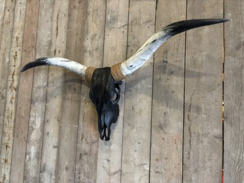 €229,00Mooie stoere zwarte Longhorn schedel met geschuurde hoorns.