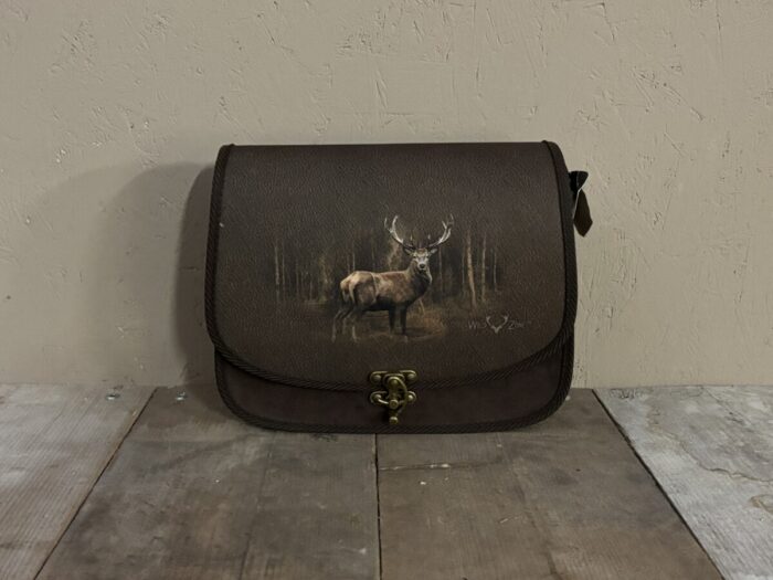 Stijlvolle stevige Wildzone schoudertas met de afbeelding van een Edelhert, deze Wildzone schoudertas heeft de afmeting 28cm breed, 21cm hoog, 10cm diep. De voorgevormde Wildzone schoudertas is een tijdloze toevoeging in uw garderobe. Deze Wildzone schoudertas heeft een mooie metalen sluiting waardoor de schoudertas goed afgesloten kan worden.