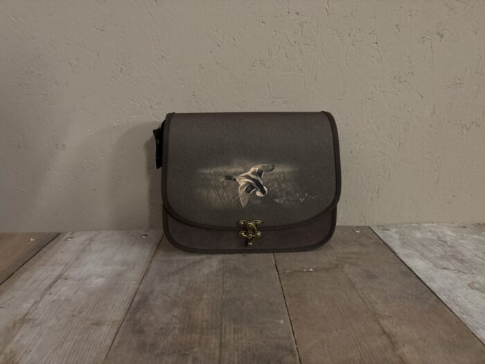 Stijlvolle stevige Wildzone schoudertas met de afbeelding van een Eend, deze Wildzone schoudertas heeft de afmeting 28cm breed, 21cm hoog, 10cm diep. De voorgevormde Wildzone schoudertas is een tijdloze toevoeging in uw garderobe. Deze Wildzone schoudertas heeft een mooie metalen sluiting waardoor de schoudertas goed afgesloten kan worden.