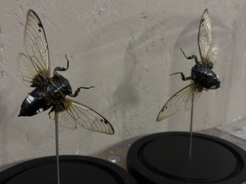 Stolp met twee opgezette Vleermuis cicaden