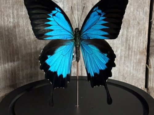 Stolp met opgezette vlinder papilio Ulysses