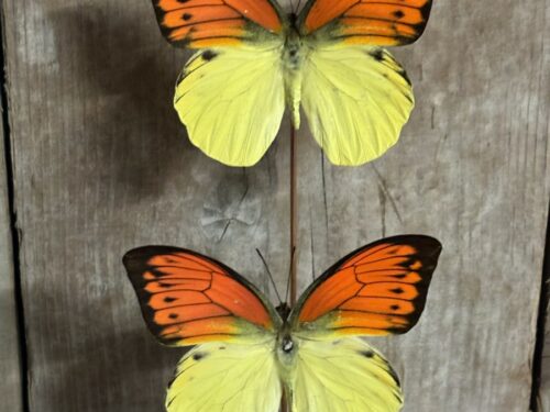 Stolp met opgezette vlinders oranje/geel
