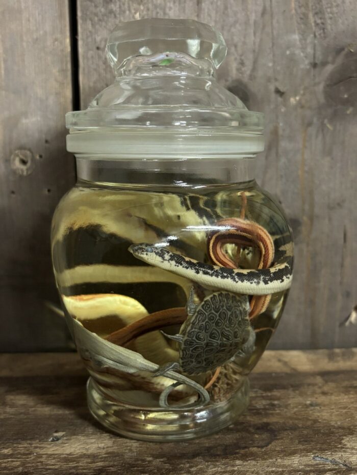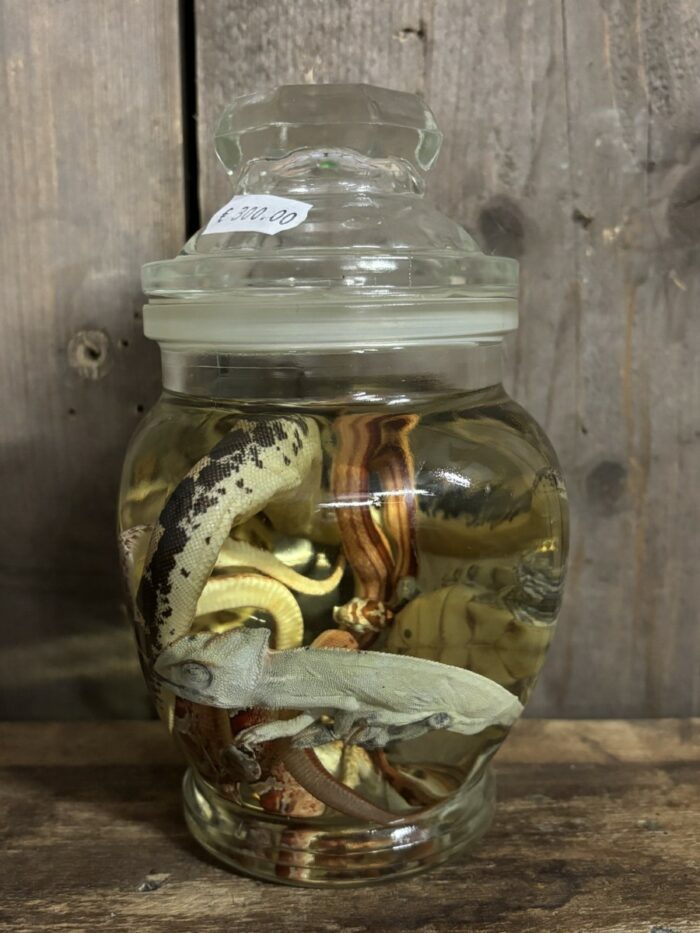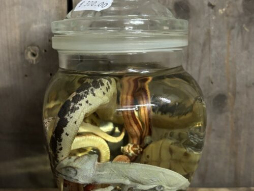 Het assortiment bestaat uit de volgende dieren: zandboa, 2x rattenslang, baardagaam, helmkameleon, hyroglief schildpad en een Chinese driestreep schildpad.