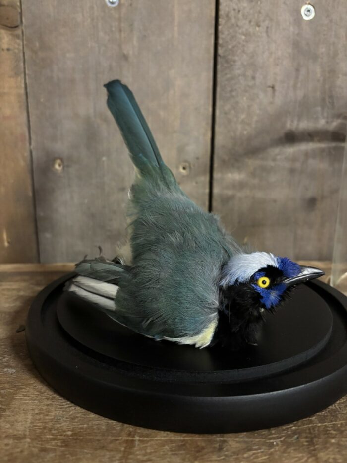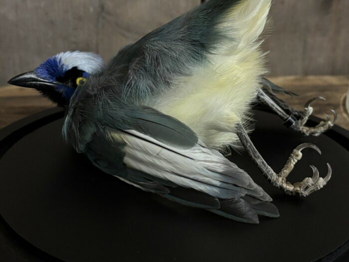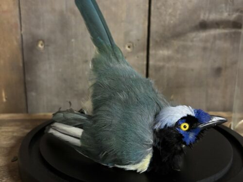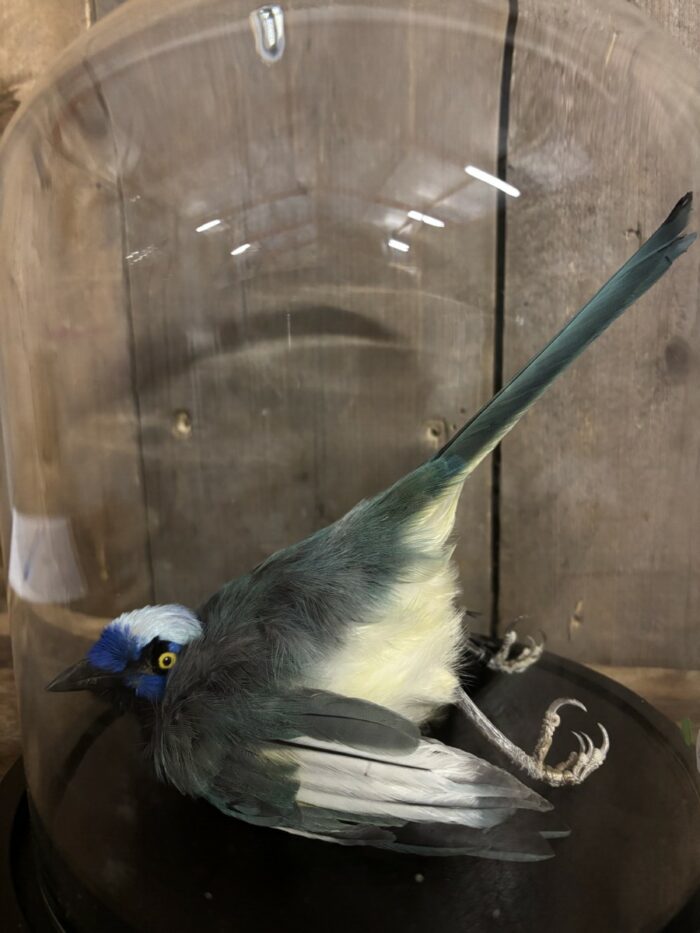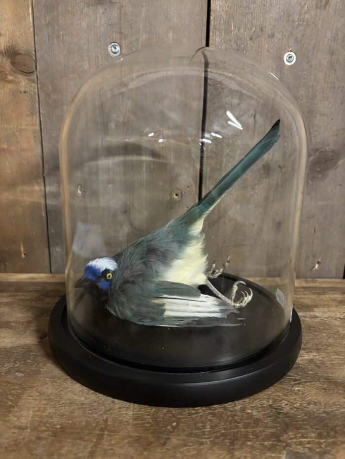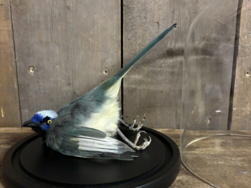 De Incagaai komt in een stolp met de afmeting, 23,5cm hoog en een doorsnede van 22cm.
