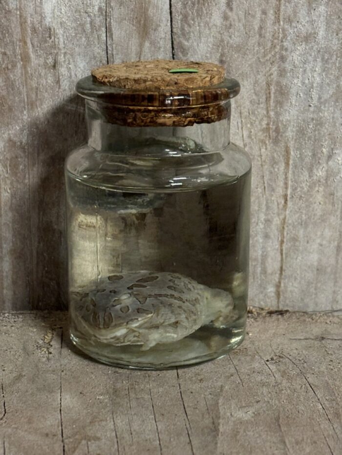 De Pacman kikker op sterk water heeft volgende afmeting, 8cm hoog met een doorsnede van 5cm.