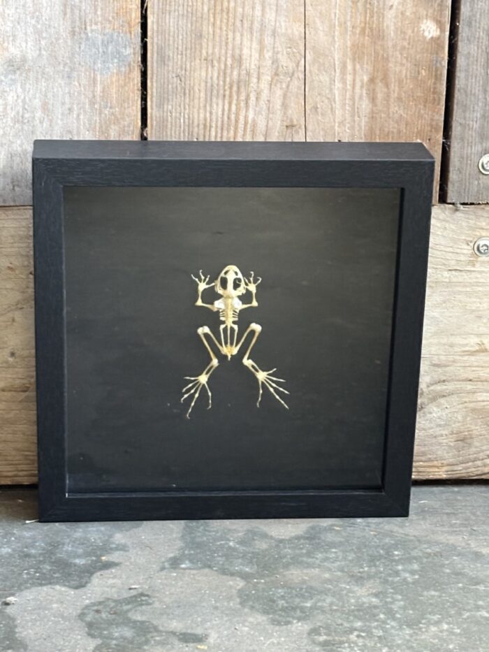 Mooi Paddenskelet in zwarte lijst met zwarte achtergrond.