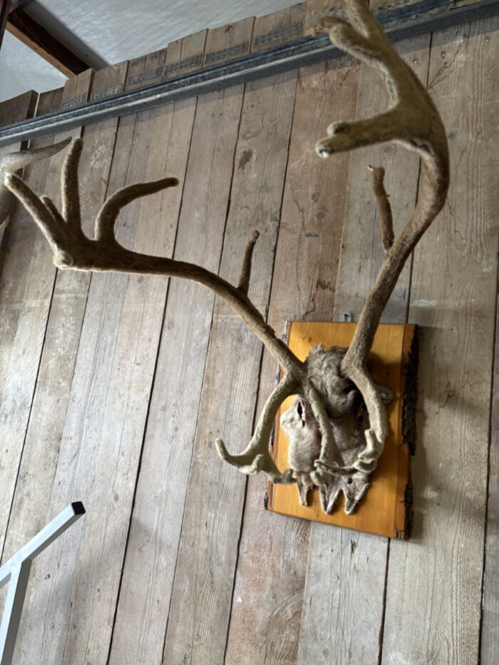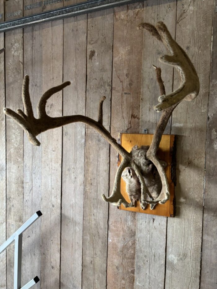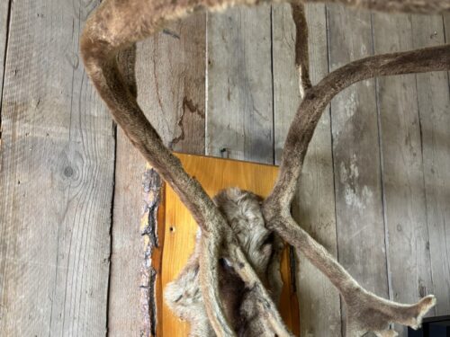 Mooi Rendier gewei in bast , eenvoudig op te hangen aan de muur.