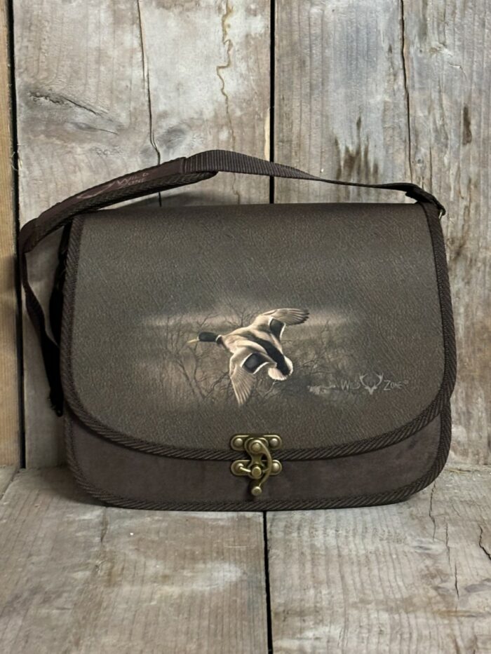 Stijlvolle stevige Wildzone schoudertas met de afbeelding van een Eend, deze Wildzone schoudertas heeft de afmeting 28cm breed, 21cm hoog, 10cm diep. De voorgevormde Wildzone schoudertas is een tijdloze toevoeging in uw garderobe. Deze Wildzone schoudertas heeft een mooie metalen sluiting waardoor de schoudertas goed afgesloten kan worden.