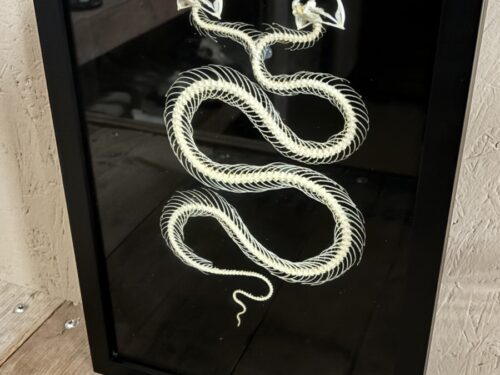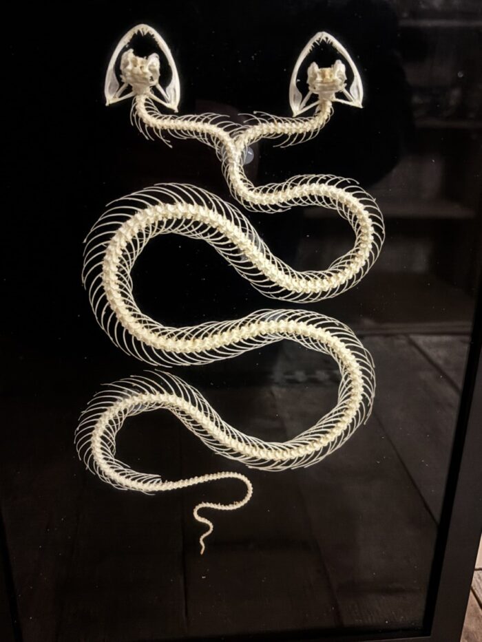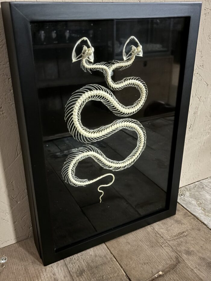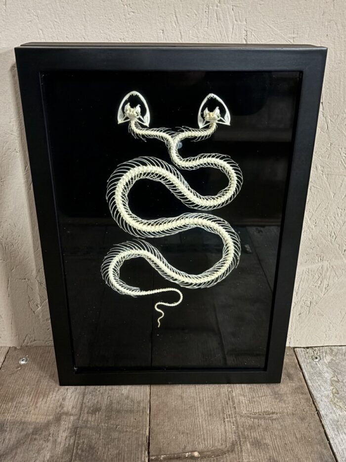 Mooi Slangen skelet met twee koppen in zwarte lijst met zwarte achtergrond.