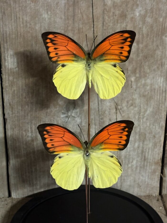 Deze prachtige stolp met opgezette vlinders is een elegant kunstobject dat de verfijnde schoonheid van de natuur in huis haalt. De stolp heeft een hoogte van 30 cm en een doorsnede van 18 cm, perfect voor het tentoonstellen van de opgezette vlinders in al hun fragiele pracht. De opgezette vlinders, zorgvuldig geconserveerd en met oog voor detail gepresenteerd, vormt een opvallende blikvanger in iedere ruimte. De glazen stolp biedt optimale bescherming, zodat de opgezette vlinders hun tijdloze schoonheid behouden. Dit decoratieve stuk is niet alleen een indrukwekkend verzamelobject, maar ook een verfijnde manier om de wonderschone details van de opgezette vlinders te koesteren.