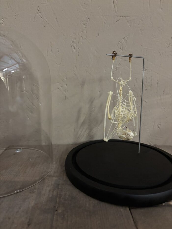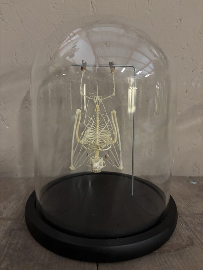 De afmeting van de stolp met Vleermuis skelet is 22 cm hoog met een doorsnede van 20 cm.