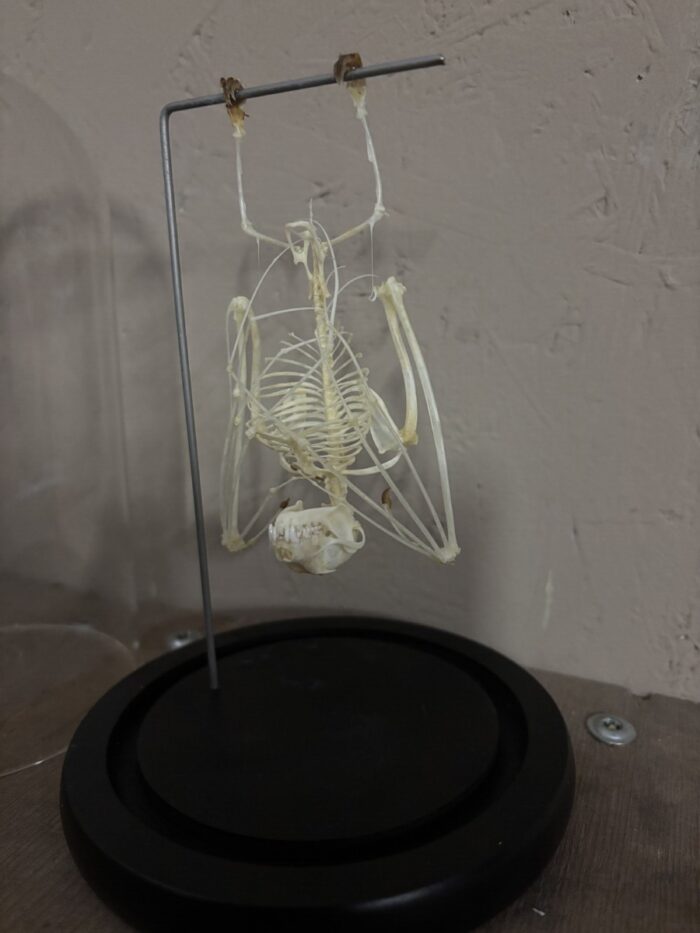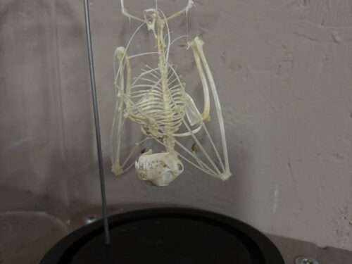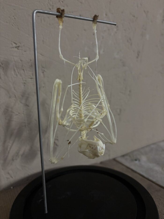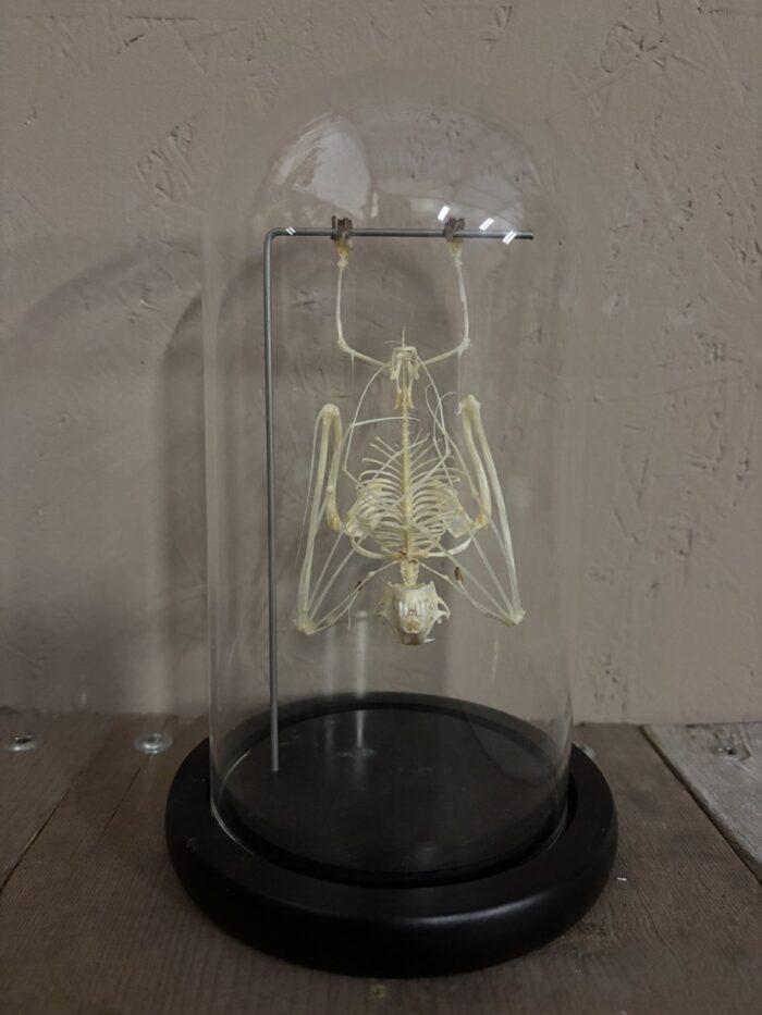 Mooie stolp met Vleermuis skelet.