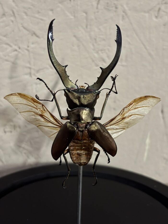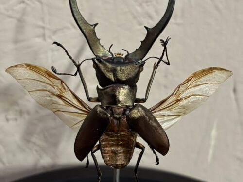 Deze opgezette vliegend Hert kan worden verzonden en wordt uiteraard zorgvuldig verpakt.