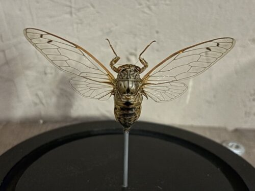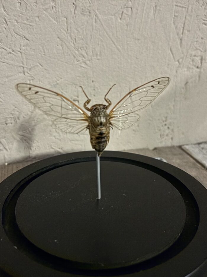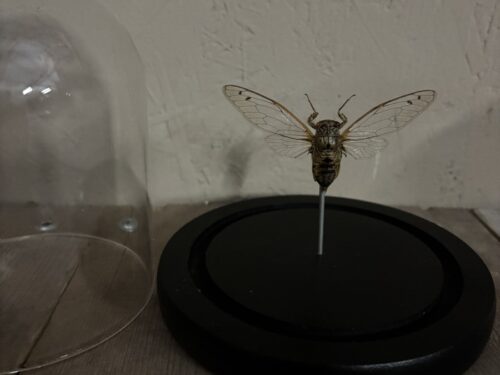 Mooi stolpje met een opgezette Cicade Clearwing.