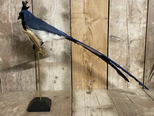 Mooie opgezette Zwartborst langstaart gaailijster.